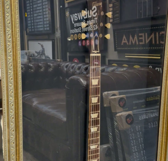 Reproducción de guitarra Gibson impresa en material especial montada y enmarcada en un marco Box, tipo caja, con profundidad (OJO! NO es una guitarra real)