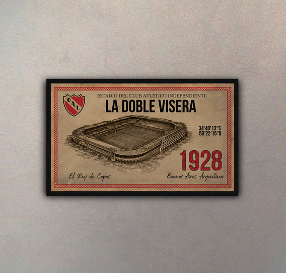Reproducción de diseño vintage del Estadio de Independiente. El diseño retro y los tonos del mismo lo convierten en un hallazgo visual de gran atractivo para fanáticos del fútbol.